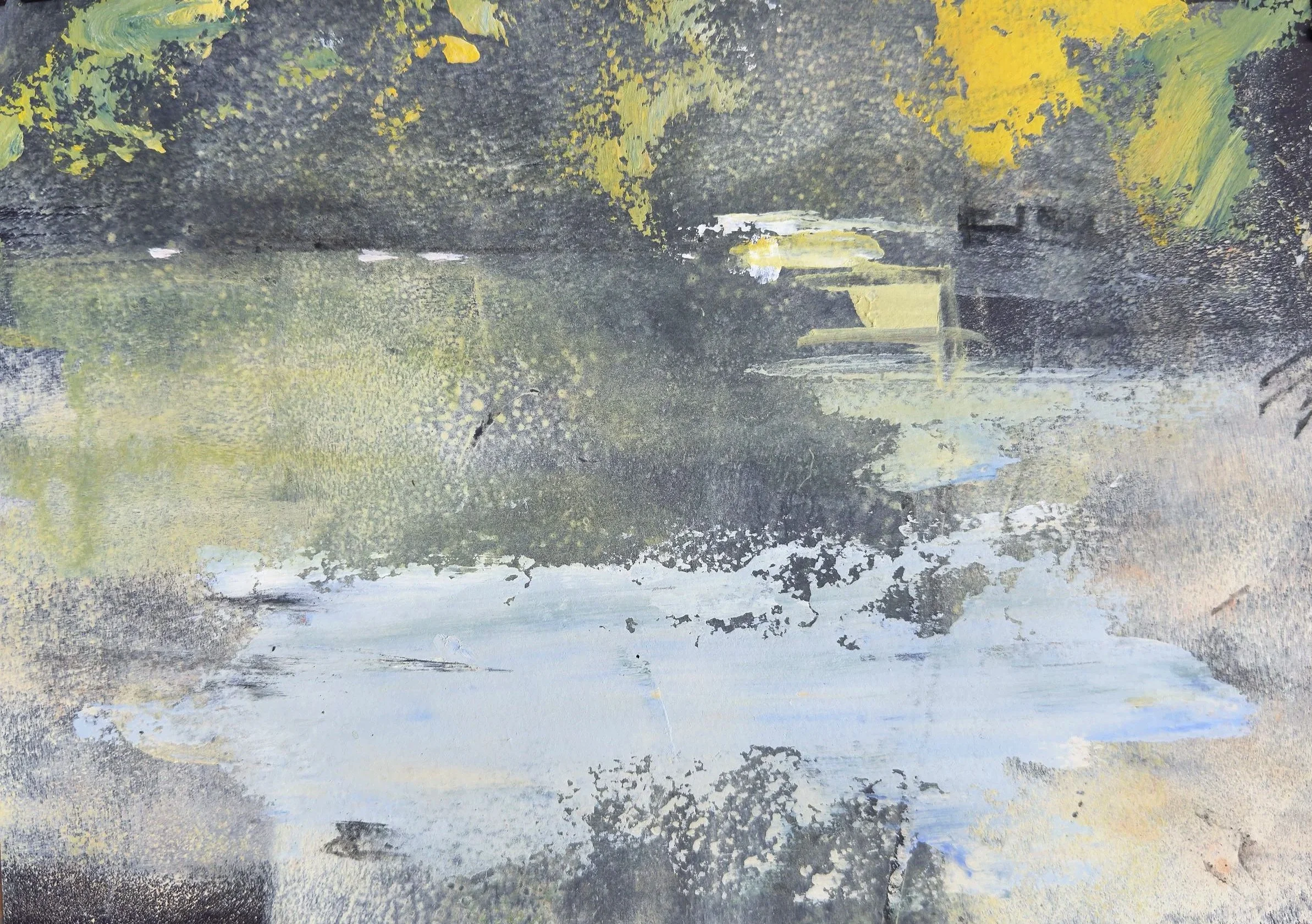 Ladies Pond, autumn 2025. Acrylics and charcoal on card