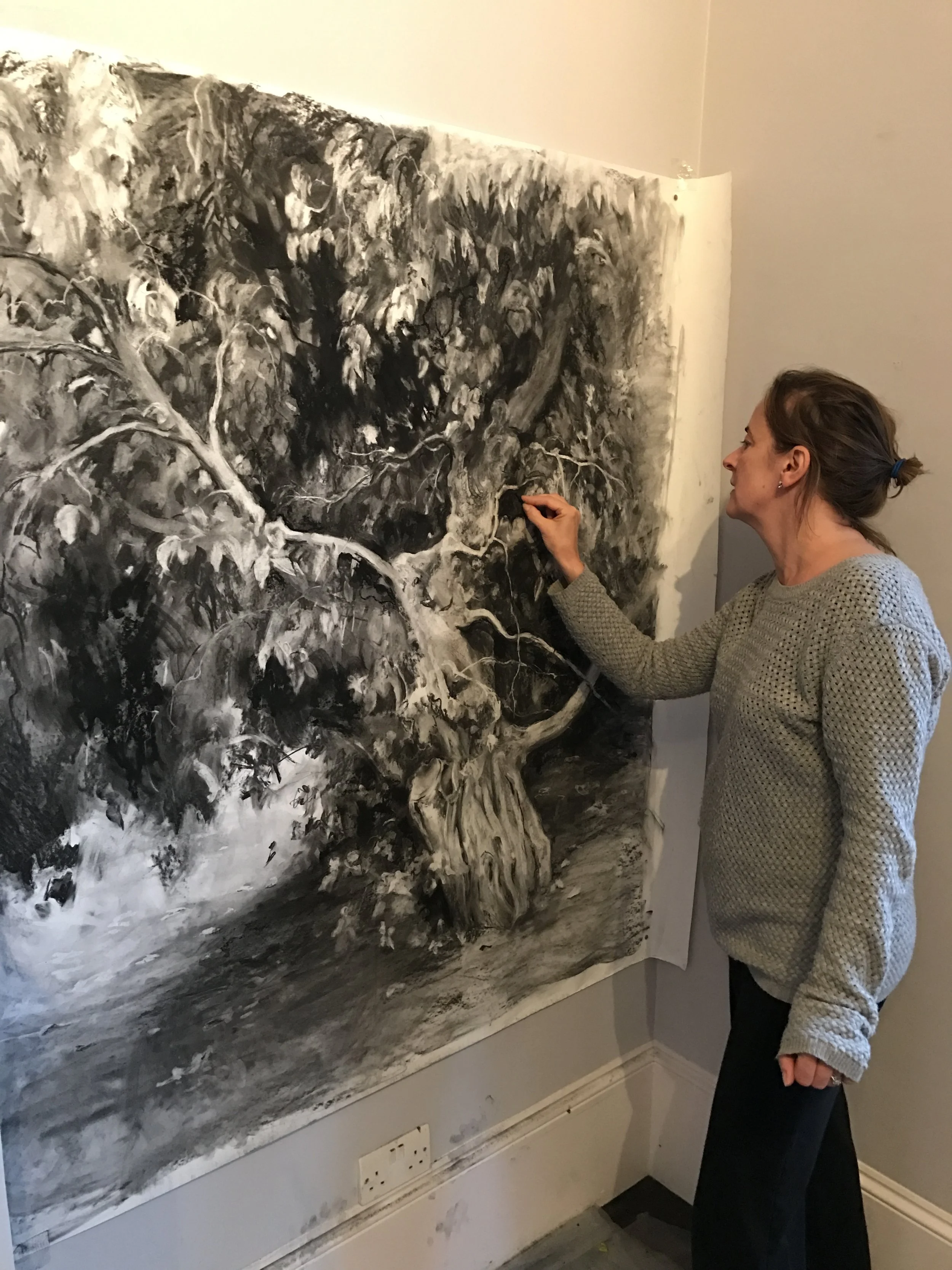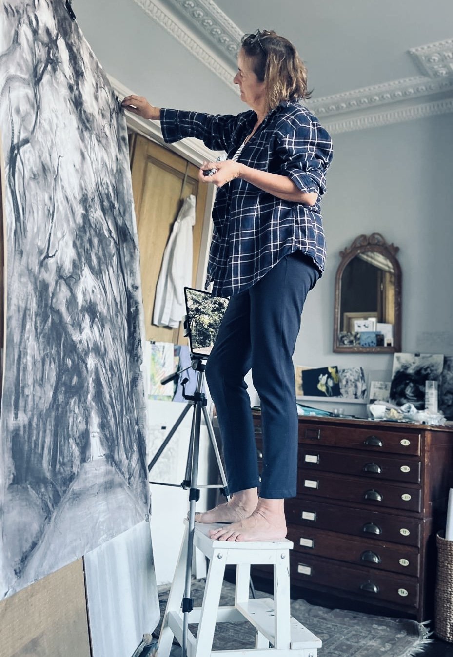 Relishing the physical qualities of my materials, I use sponges and rags to move paint around freely when making larger pieces, or bring a lightness of touch when building up delicate layers of watercolour or pencil. Using collage and monoprints enables me to simplify forms and eliminate the unnecessary, whilst embracing the accidental.